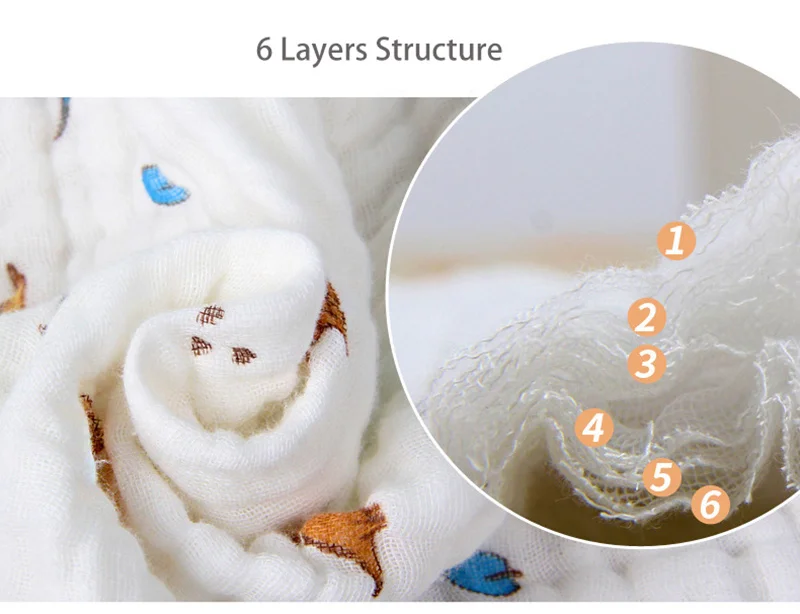Materiale: 100% Cotone, 6 strati di garza