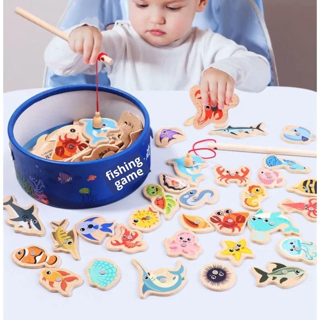 Gioco Montessori in Legno da Pesca: Giocattolo Educativo con Tema Vita Marina