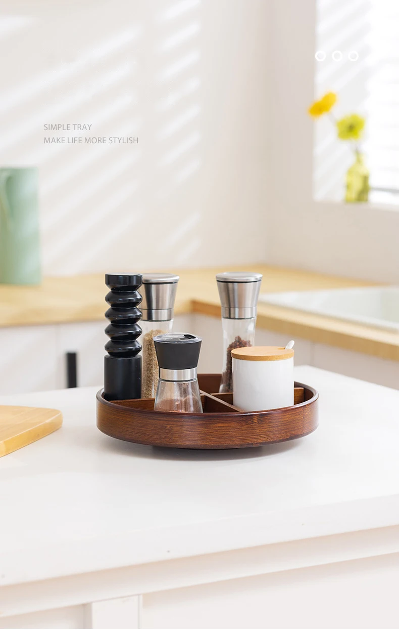 Sfrutta ogni angolo con stile grazie alla mensola rotante in bambù. Perfetta per spezie, cosmetici e oggetti quotidiani. Ordina ora!