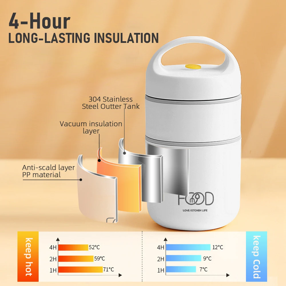 ✔️ Versatile per Cibi Caldi o Freddi: Ideale per zuppe, pasta, frutta, verdura o snack. Mantiene la temperatura desiderata per ore.