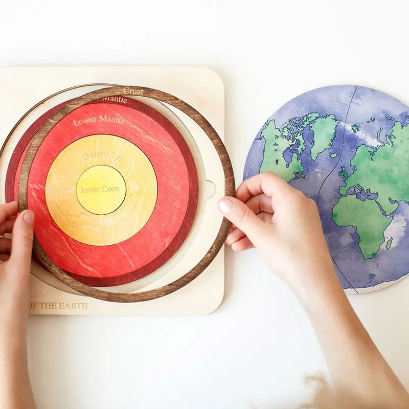 Accendi la curiosità scientifica del tuo bambino con il Puzzle Geologico Montessori in Legno, un puzzle educativo a più strati che mostra in modo chiaro e visivo la struttura interna del nostro pianeta. Dalla crosta al nucleo, ogni livello è progettato per stimolare l'apprendimento attraverso il gioco pratico, secondo i principi del metodo Montessori.