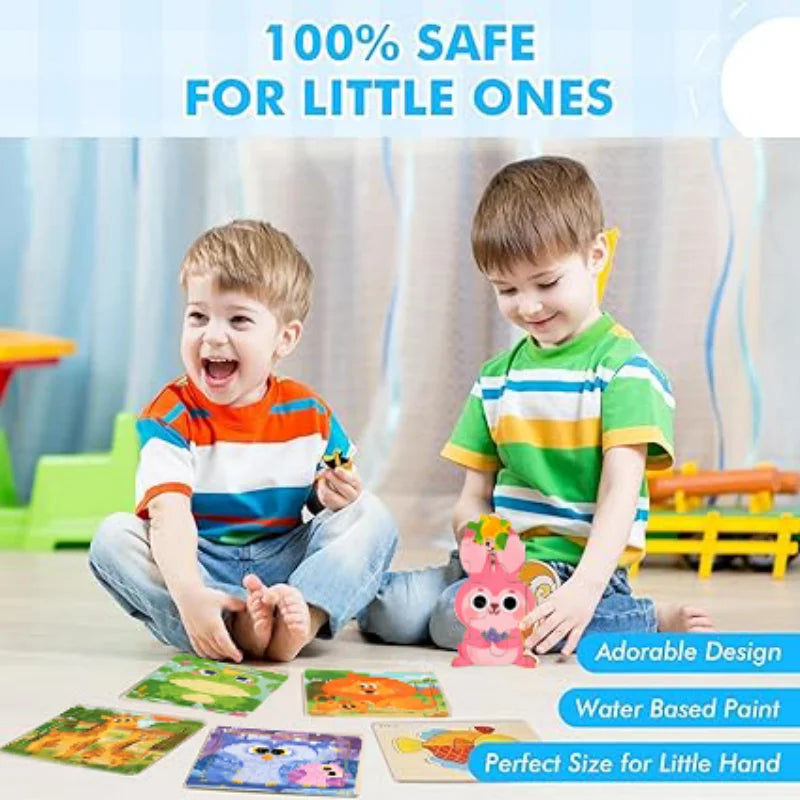Ogni pezzo del puzzle presenta allegre e colorate illustrazioni di animali, visivamente attraenti e divertenti per i bambini, rendendo l'apprendimento un'esperienza piacevole!