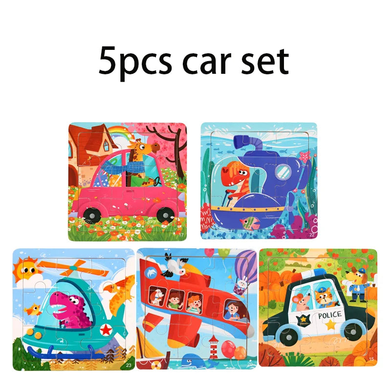 1x Puzzle Montessori in Legno con Animali in Stile Cartone Animato
