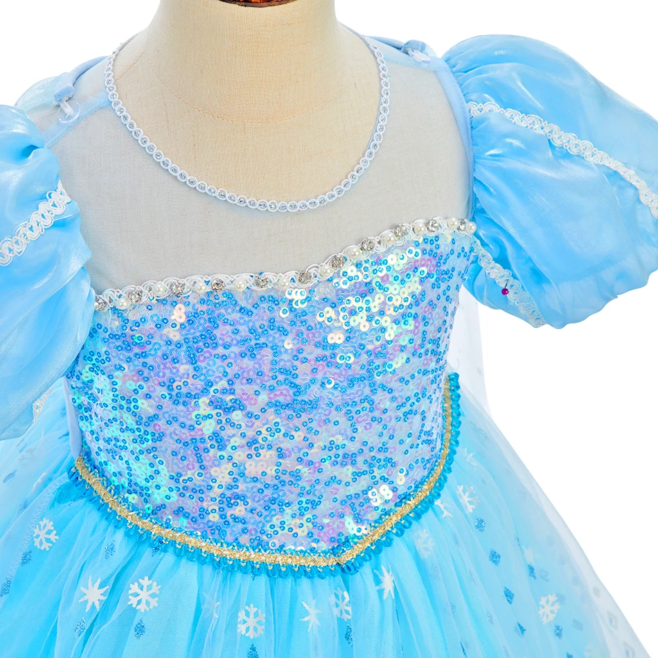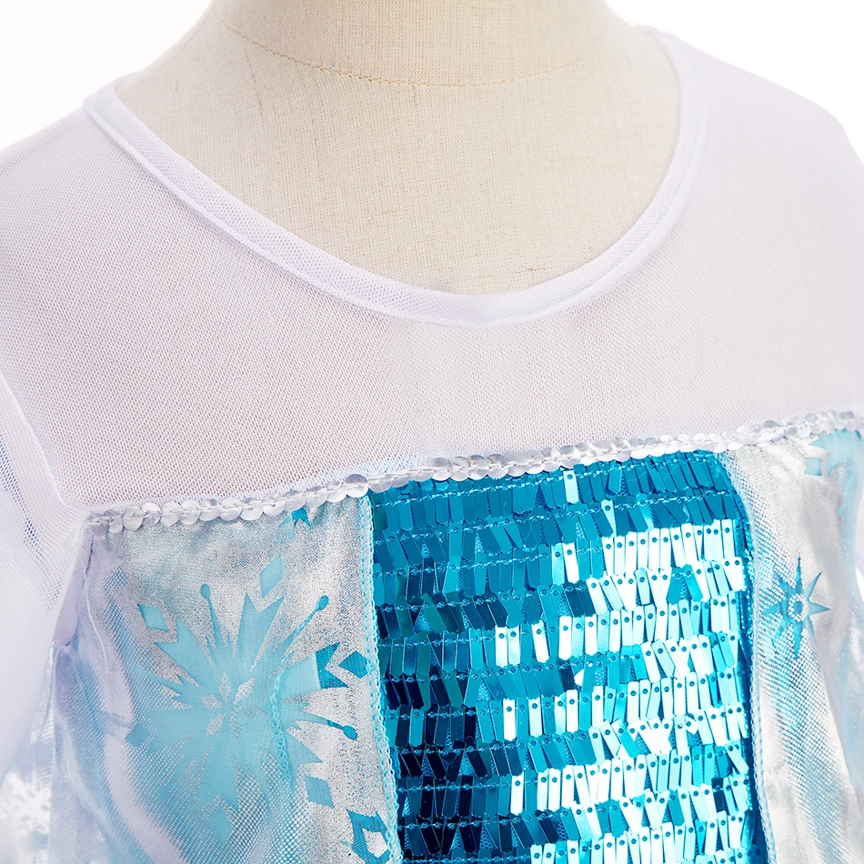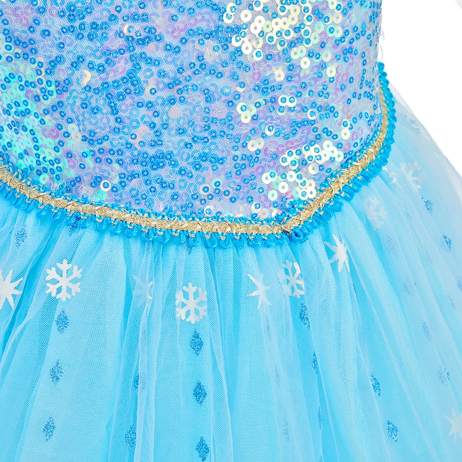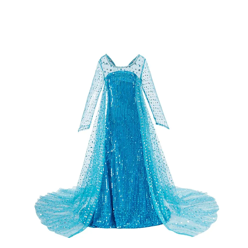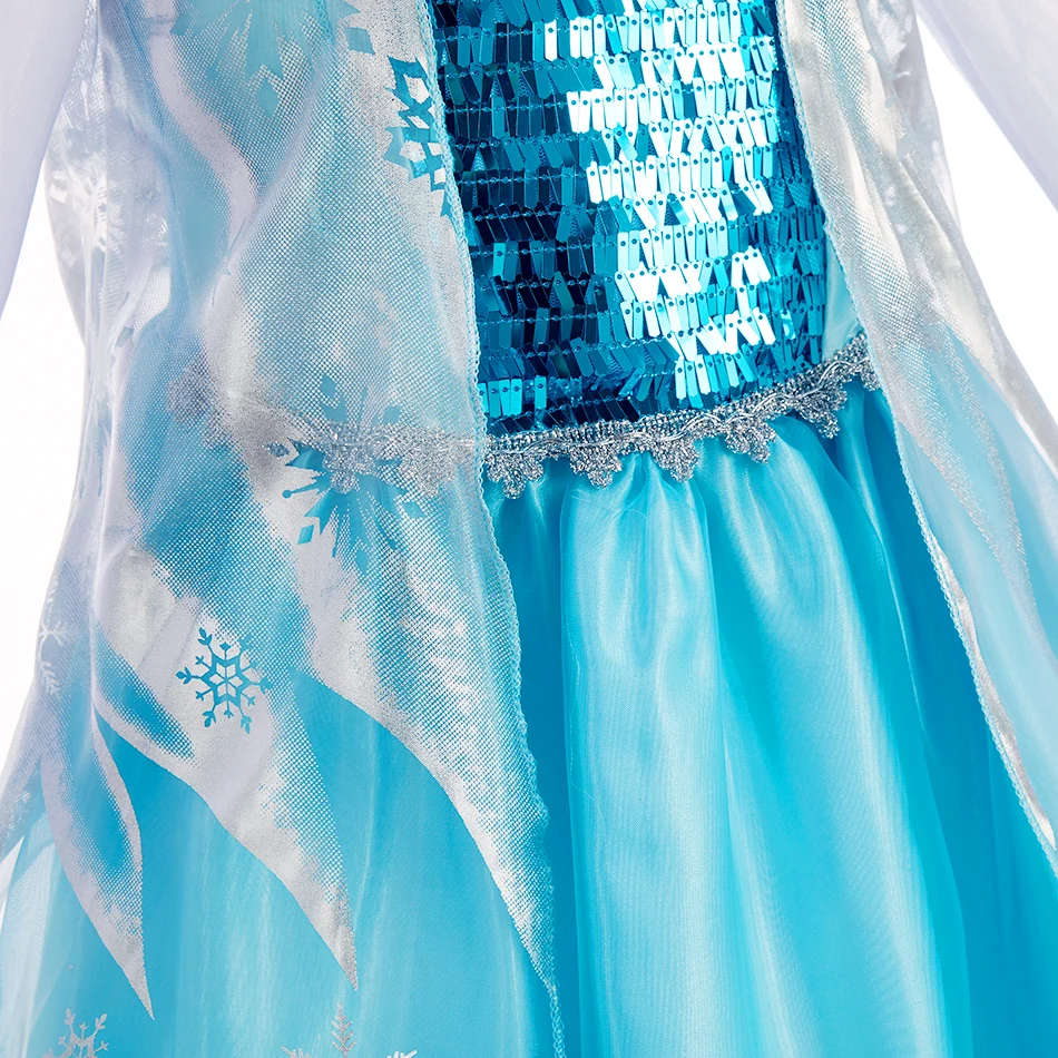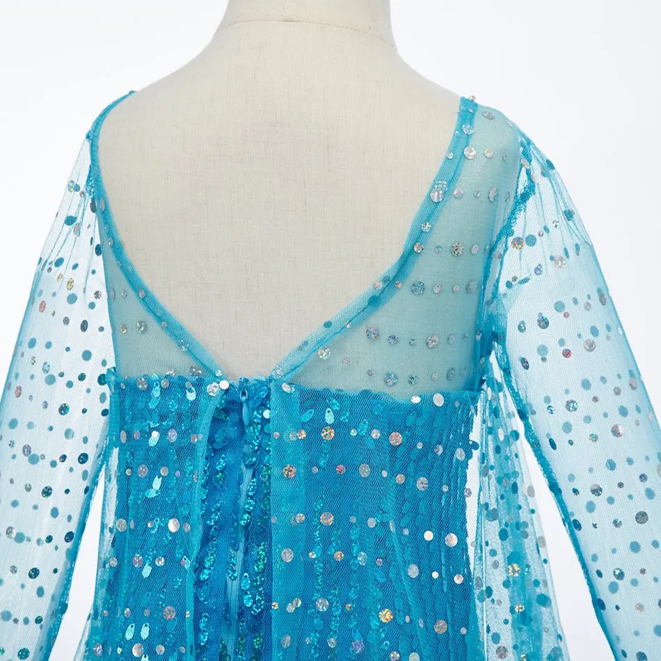 Vestito Halloween. Abito da Principessa Elsa Blu con Paillettes.