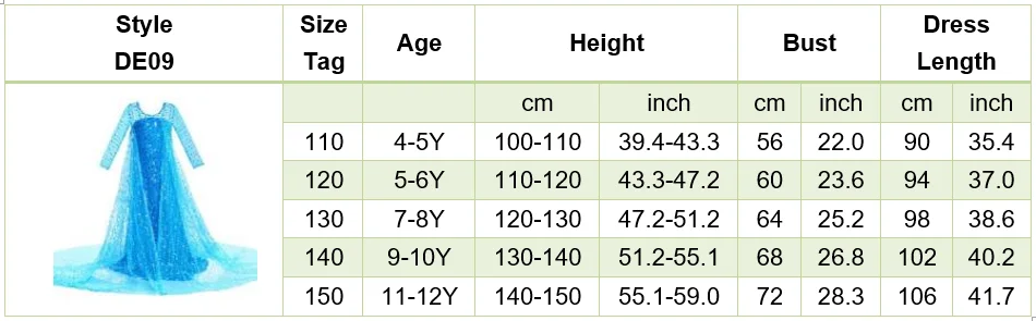 - 1 Costume Elsa Blu con Paillettes (taglia unica per bambine di 4-12 anni)